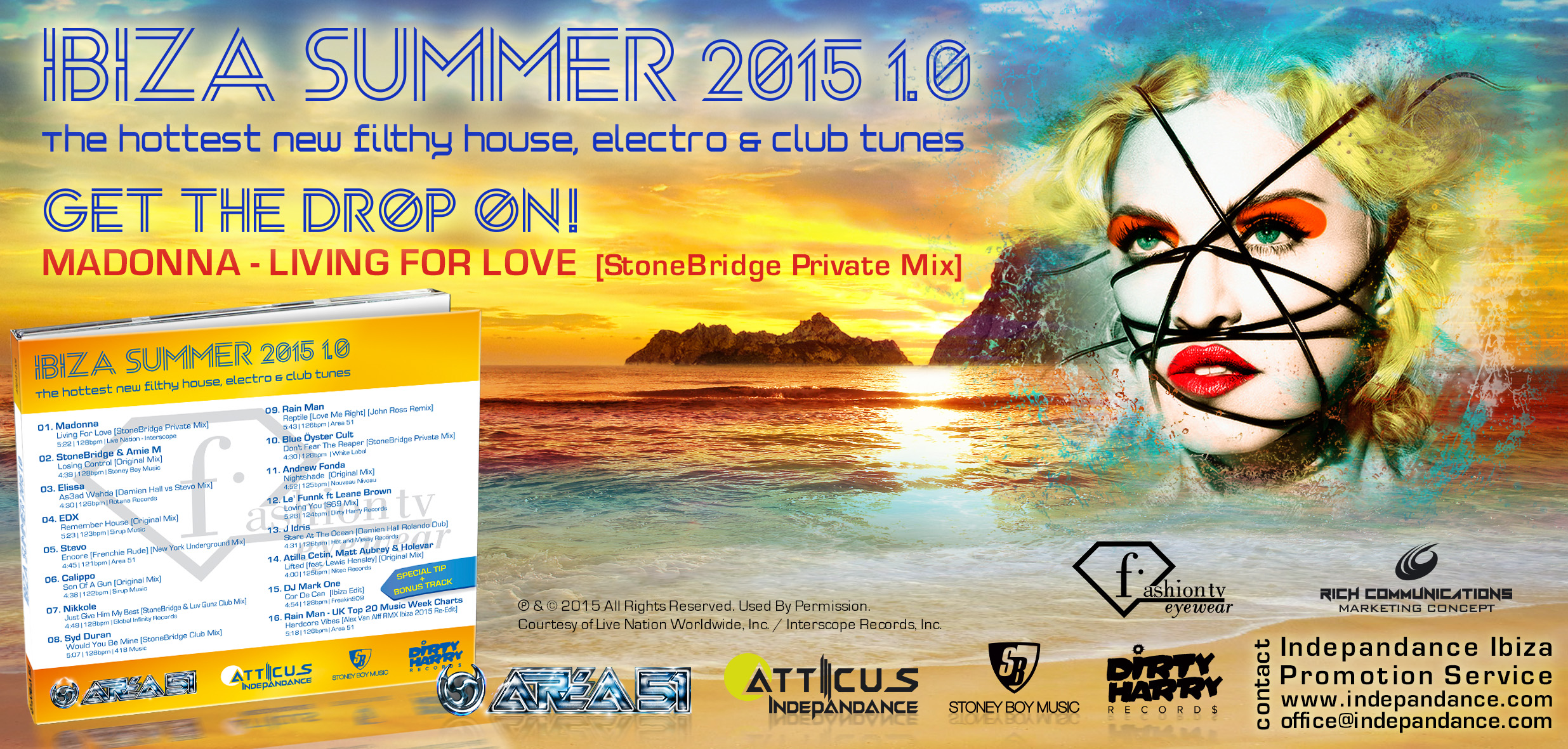 Rich Communications is one of the world’s leading Ibiza promotion services. promoting on Ibiza from Madonna, Elissa, StoneBridge, Crystal Waters, Docka ft. Snoop Dogg, EDX, Damien Hall, Jason Sobin, Zia, GloVibes and many others.